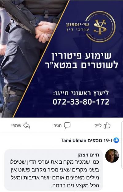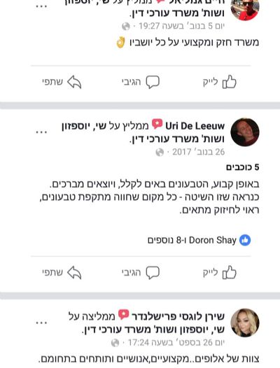עו"ד יפעת שי - יוספזון הכריזה כבר בגיל 5 כי היא תהיה עורכת דין, הואיל וההגנה על הזולת בערה בה, ומאז ועד היום היא נלחמת לשם כך ללא פשרות. עו"ד יוספזון הינה דור 4 במשפחה של שוטרים ו - 10 במספר, אשר החלה את שירותה במשטרת ישראל עוד בשנת 2003, שם שירתה בתפקידי אג"מ ואק"מ. | ראה הצלחות המשרד >